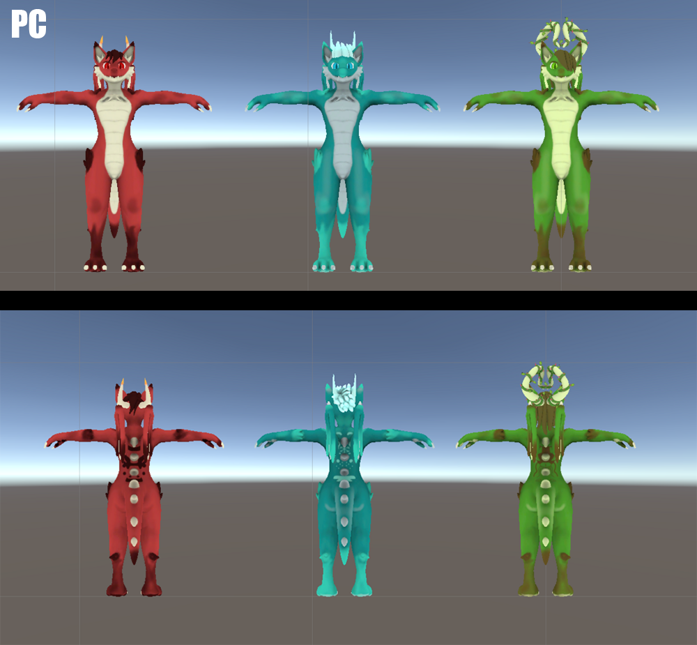 - Toggles between 3 different body textures PC ✓ Quest X
